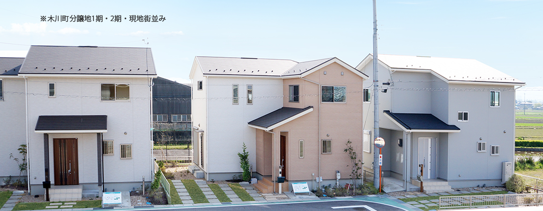 商業施設が賑わい、宅地内からは田園風景が望める色彩豊かな分譲地です。
